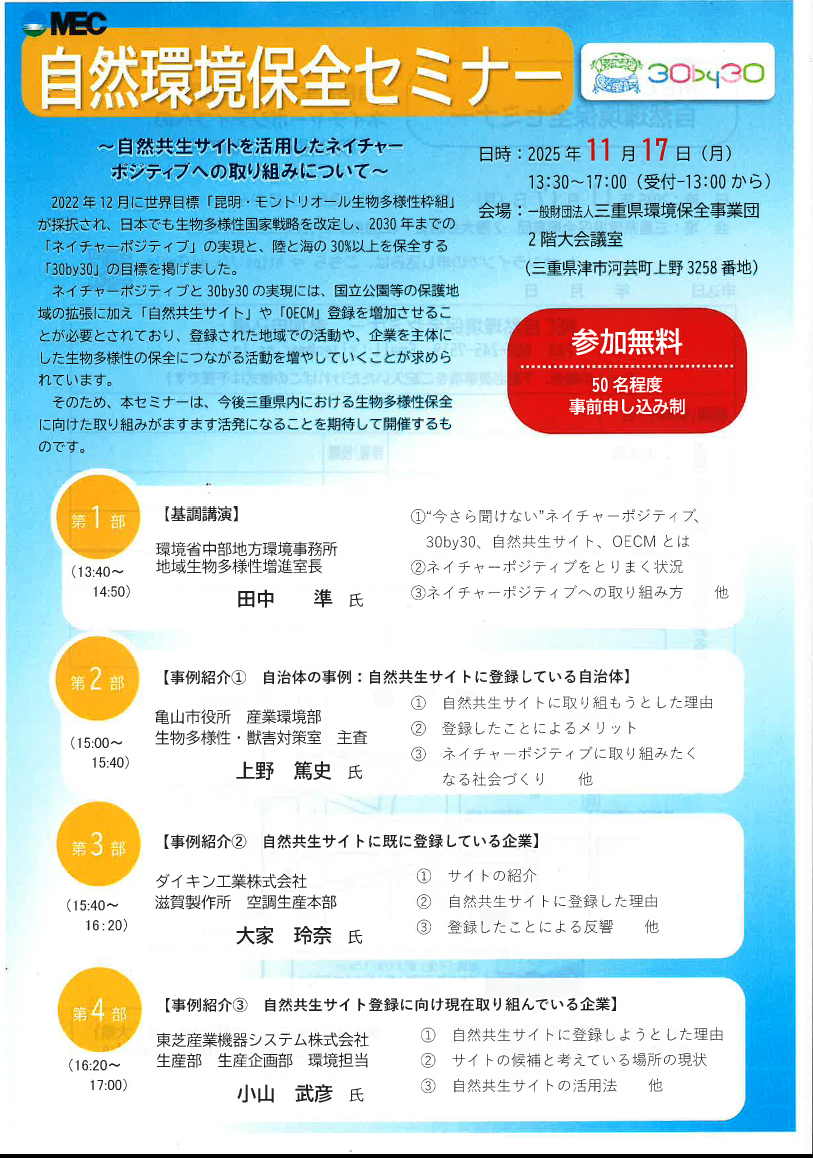 ⇒詳しくは、自然環境保全セミナーちらしをご覧ください。