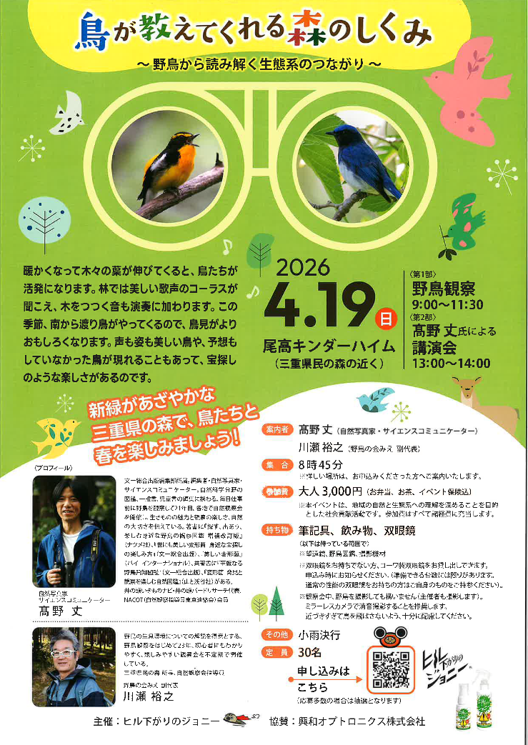 新緑があざやかな三重県の森で、鳥たちと春を楽しみましょう!