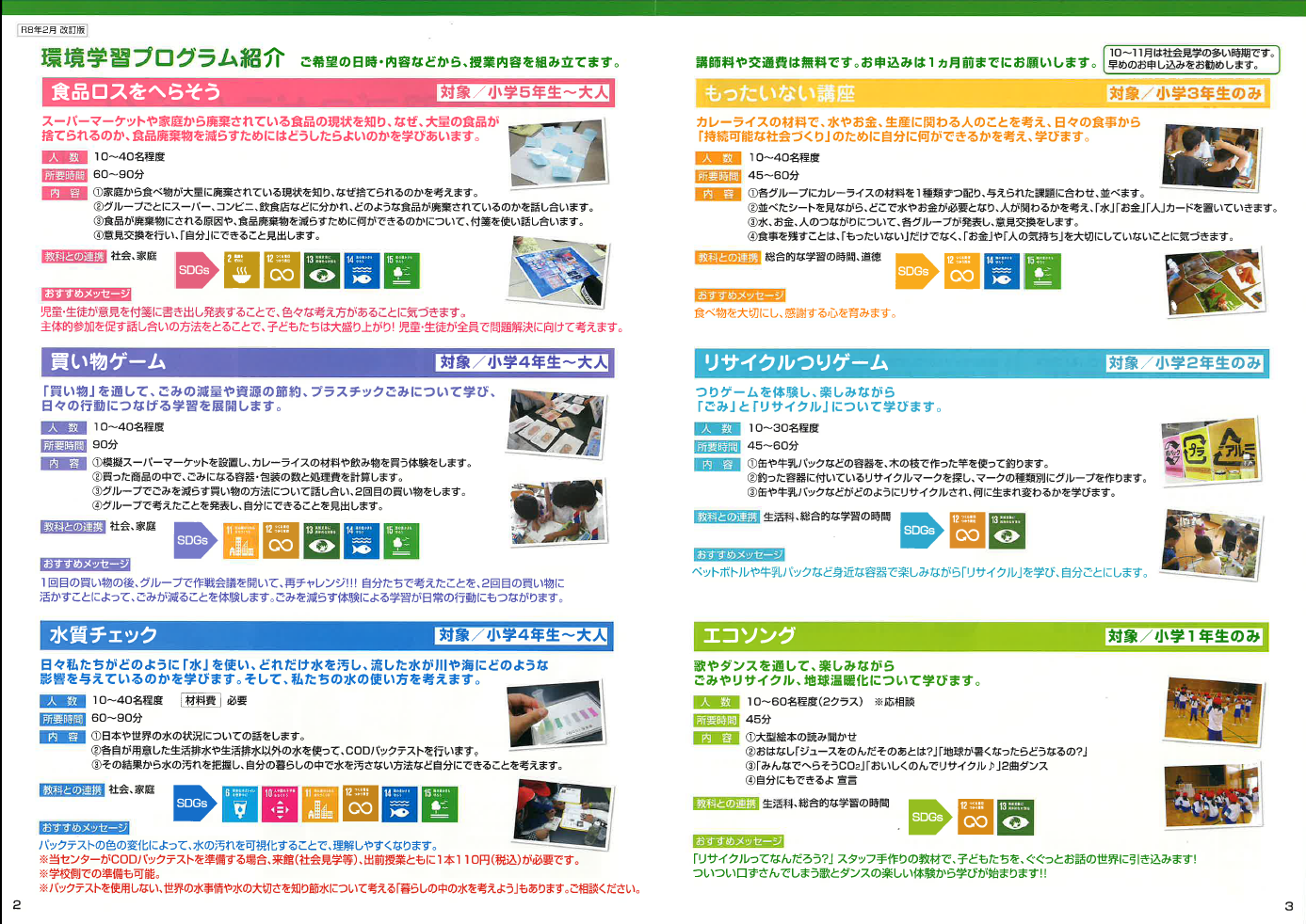 所要時間:プログラムにより異なります。(詳しくは環境学習プログラムガイドをご覧ください。)
