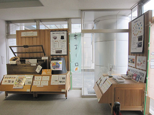 家庭ごみの3割以上のごみは土に還すことができる資源です。自然の力と協力した生ゴミ処理機「キエーロ」および設置型コンポストを展示しました。キエーロは腐ったもの、魚のアラ、天ぷら油など生ごみを分解し、一方でコンポストは刈り取った草花や抜いた雑草など庭ごみを分解して、土をつくることもできます。ごみ袋の無駄遣いはサヨナラです。キエーロとコンポストの使い方をまとめたパンフレットなども展示していただきました。