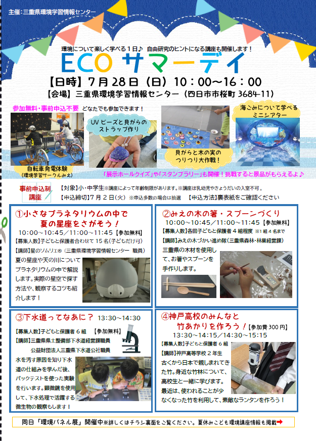 環境について楽しく学べる1日♪自由研究のヒントになる講座も開催します!