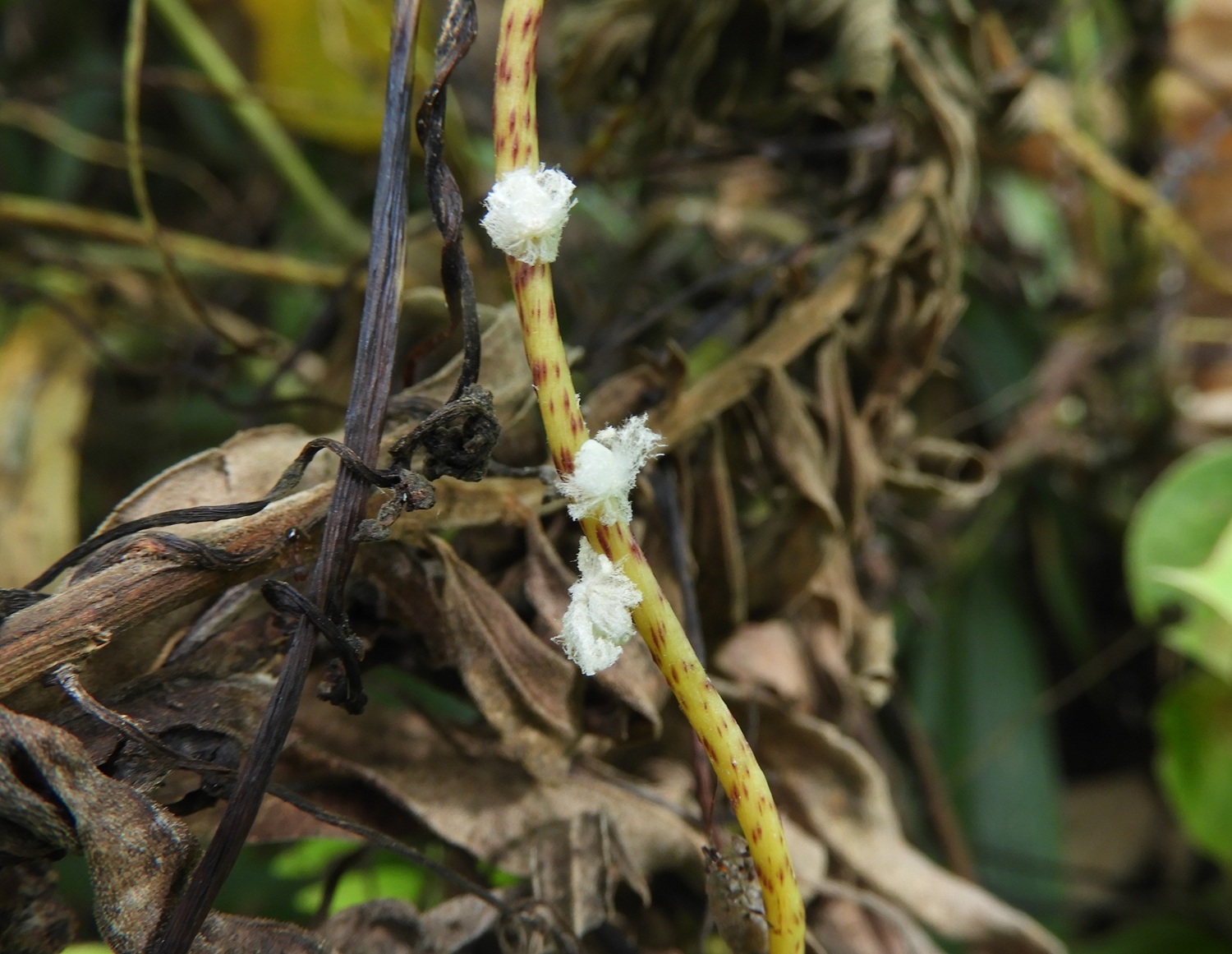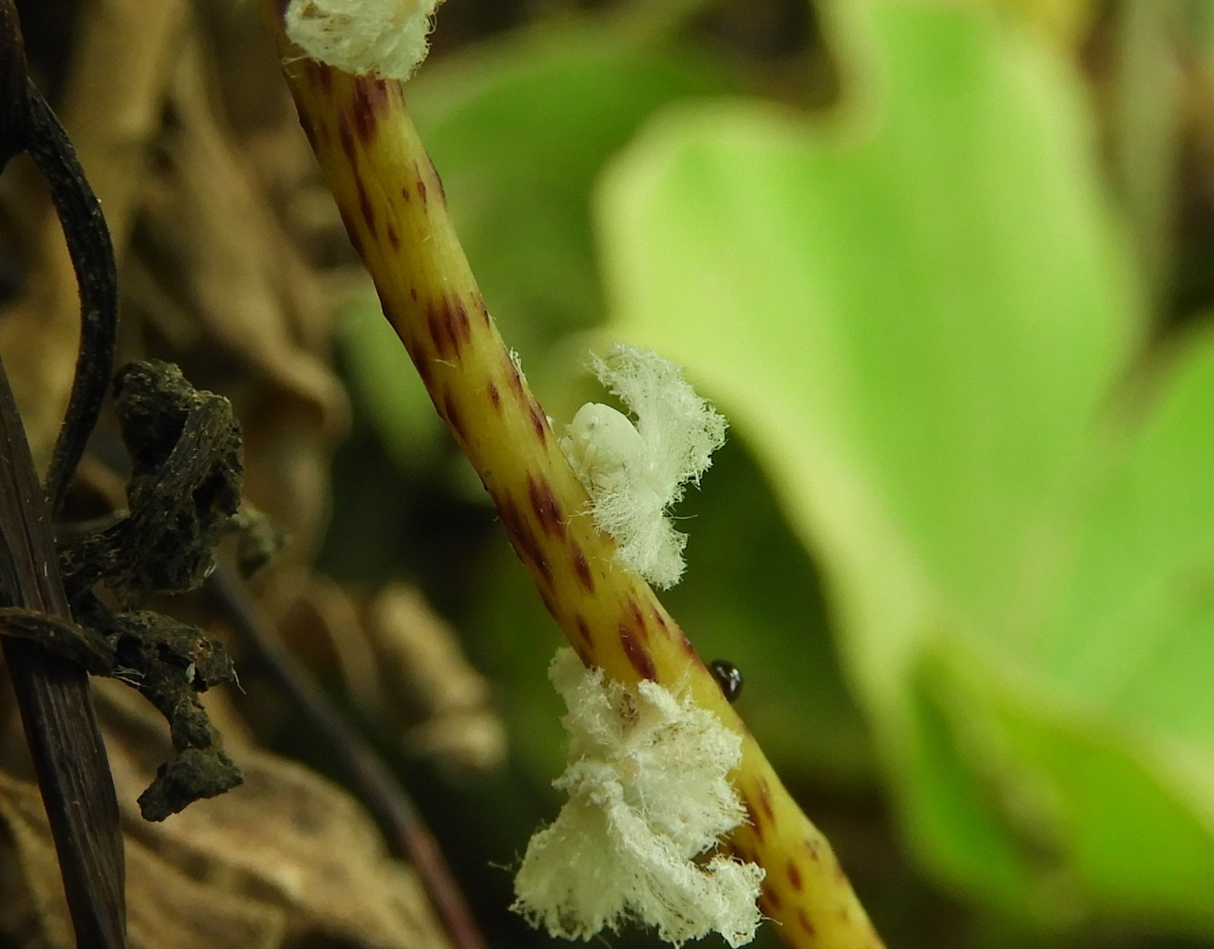 ネナシカズラのつるに白い綿毛のようなものが (撮影 2025.8.30)