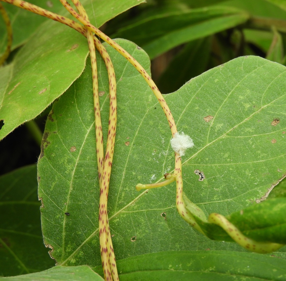 ネナシカズラの茎には赤褐色の斑点がある (撮影 2025.8.17)