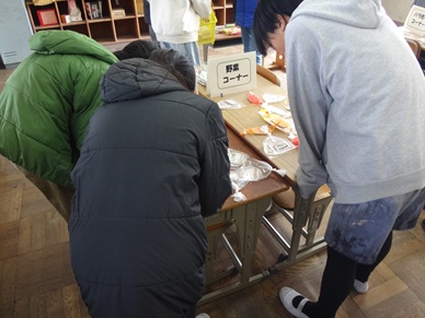 「買い物ゲーム」はグループに分かれてカレーを作るための材料と飲み物を隣に作った模擬スーパーマーケットで買い物してきます。みなさん相談しながら楽しく買い物をしました。そこで、買い物をすると「ごみ」がたくさん出てしまうことに気づきます。