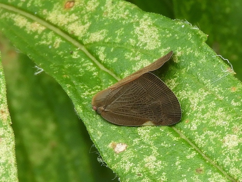 先日、三重県環境学習情報センターの近くのネナシカズラに、チュウゴクアミガサハゴロモと思われる幼虫がいましたが、チュウゴクアミガサハゴロモの成虫がいました。