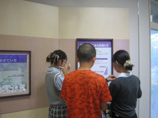 「展示ホールクイズ」では、グループに分かれて展示ホールにある6つの環境に関するコーナーでクイズに挑戦しました。