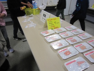 「買い物ゲーム」はグループに分かれて、カレーを作るための材料と飲み物を模擬スーパーで買い物してきます。お買い得商品を中心に、みなさん楽しく買い物できましたが、買い物をすると「ごみ」がたくさん出てしまうことに気づきました。
