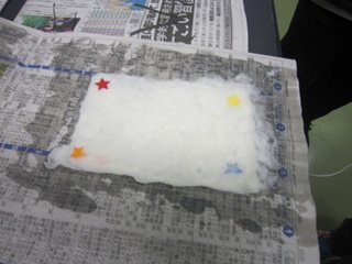 今回は、「紙すき体験」では、牛乳パックを使ってハガキを作ります。