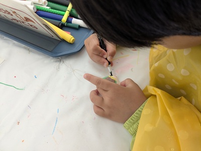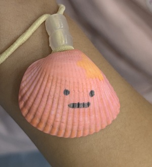 「UVビーズと貝がらストラップ」は、好きな貝を選んで「UVビーズと木のサイコロストラップ」は木を選んで、そこに思い思いの絵や言葉を書いて紐を通したら出来上がりです。とても簡単なので、小さな子どもさんから大人まで、みなさんに楽しんでもらいました。