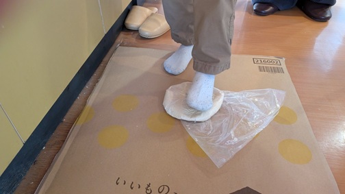 手でこねてこねてから、足でぎゅーっと、ぎゅーっと♪